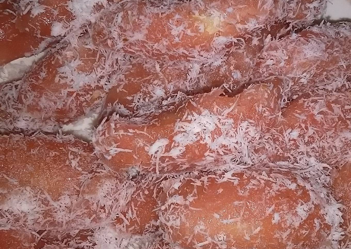 - Parut kasar kelapa. Kemudian bagi 2 bagian