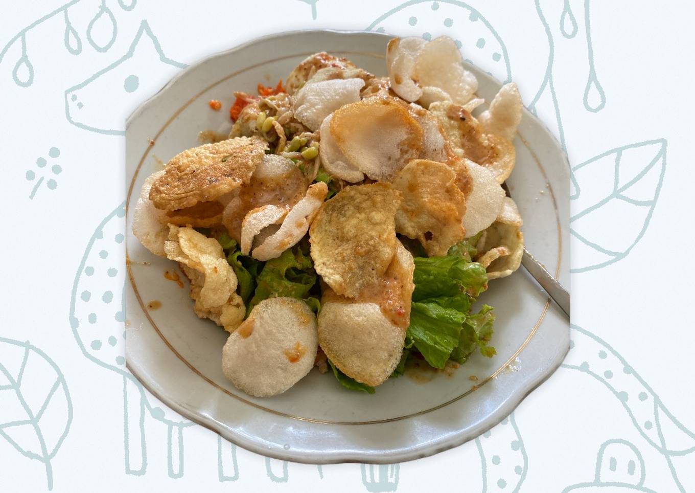 - Siapkan di piring: lontong, tahu, tempe, kentang, telor dan lainnya. tuang bumbunya dan taburi dg krupuk emping. tmbh kan sambal bila suka. siap di hidangkan.