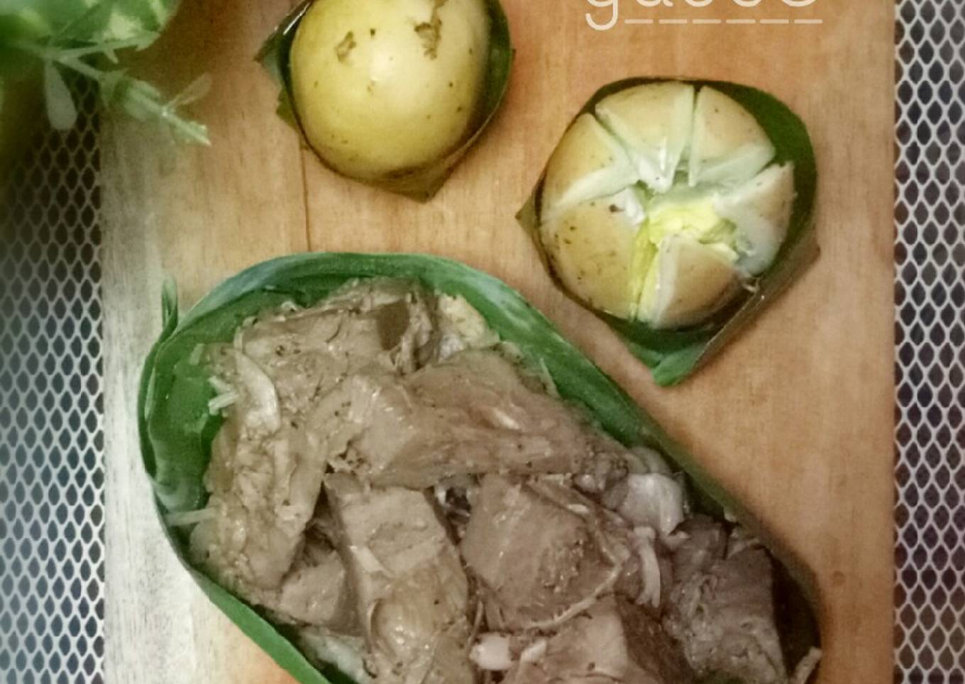 - Setelah itu, buang alas daunnya masukkan telur rebus dan santan kental. Tutup rapat, Masak 30menit.
