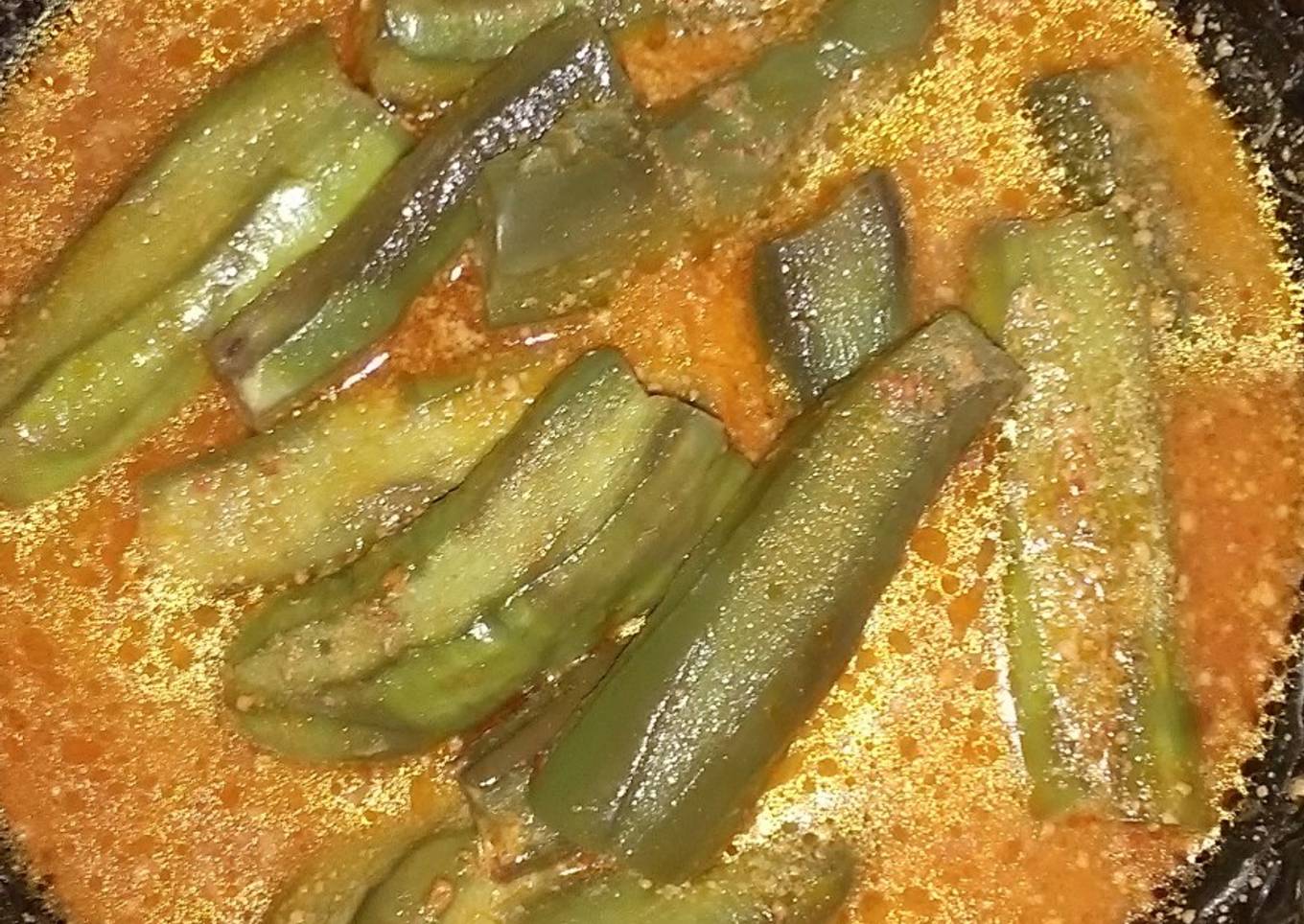 - Masukkan terong sambil di aduk. Hingga terong layu dan matang.