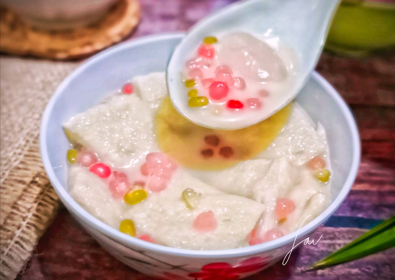 - 1 genggam sagu mutiara, rebus dgn metode 5:30:6