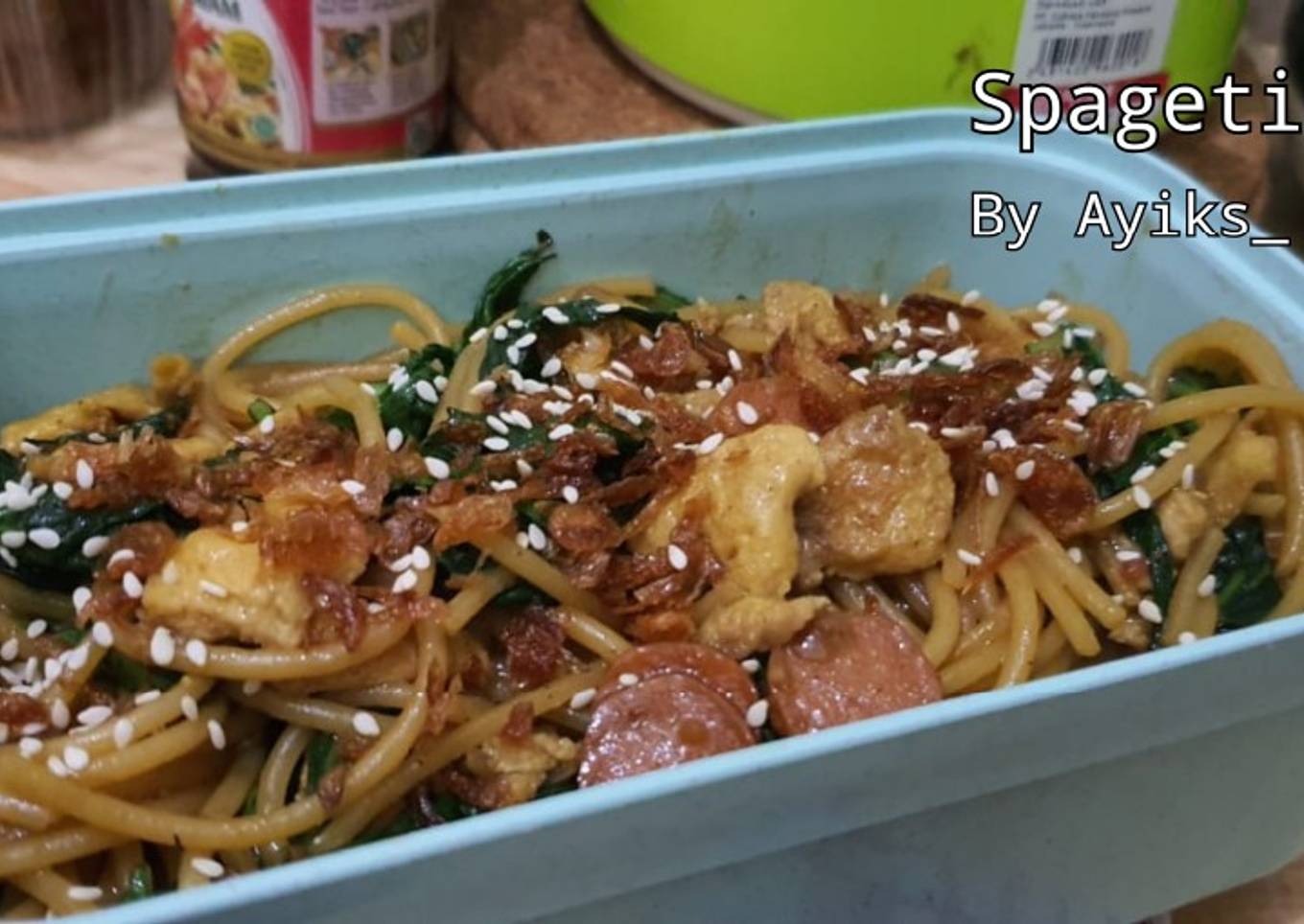 - Tambahkan spageti. Aduk rata masak hingga matang sajikan ❤