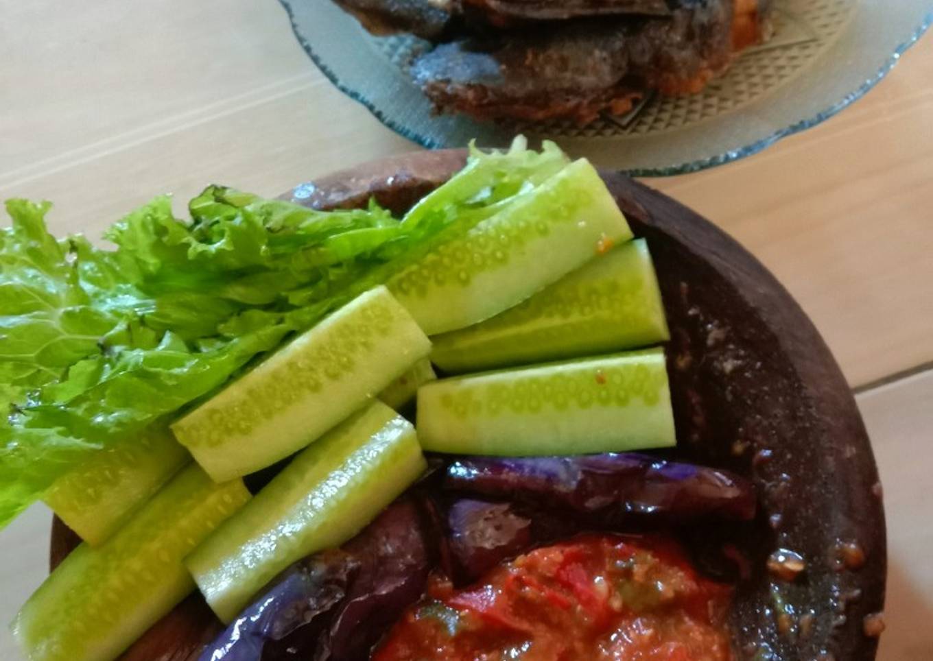- Goreng terong ungu untuk lalapan dan potong² timun sesuai selera..